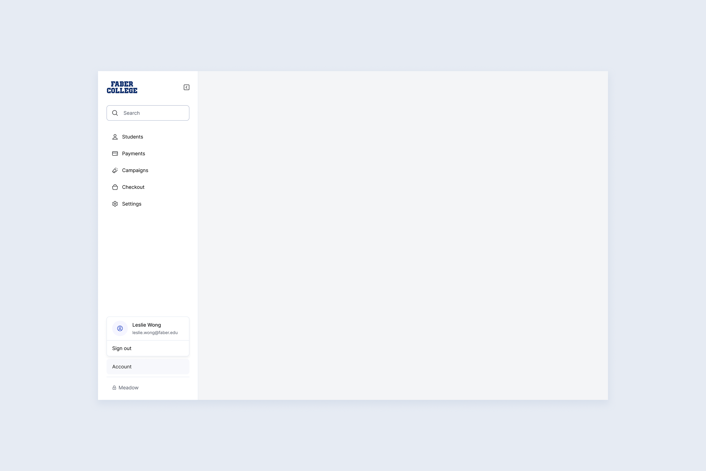 As Meadow's admin product grew, the top navigation couldn't keep up. Settings-level pages were being forced onto the Account page, Checkout sub-pages were crammed into tabs, and upcoming features had no logical home. On top of that, the horizontal nav was eating vertical real estate that data-heavy admin tables badly needed.
