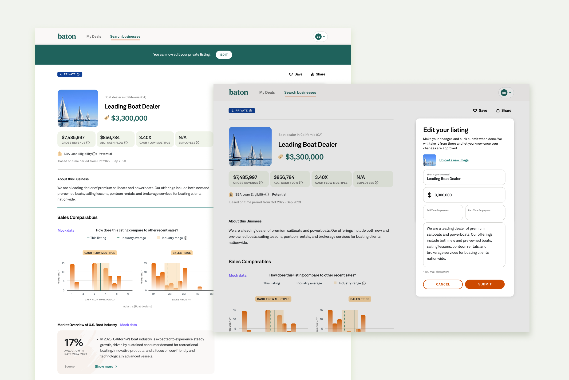 Give users the control to change information on their private and public listings.